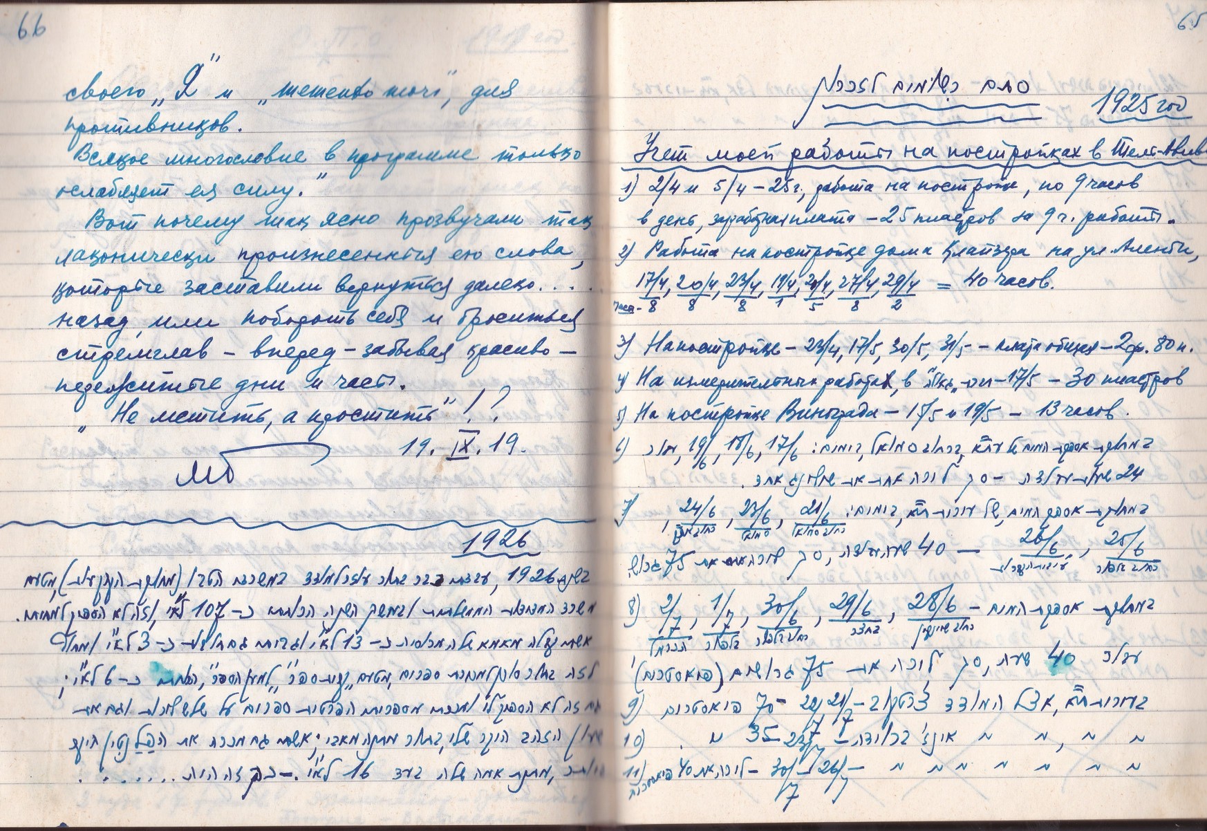 Страницы в конце дневниковой тетради 1933-38 г.г.                             עמודים בסוף המחברת יומן  1933-38